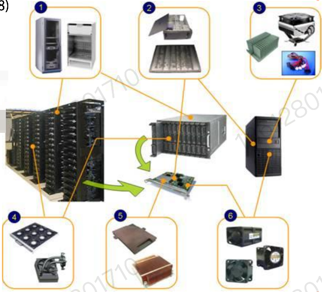 (1)服务器机箱/机壳(4)风扇阵列,水冷散熟器