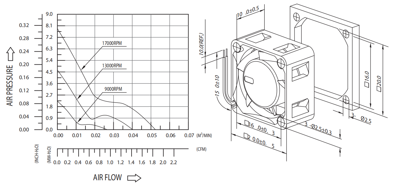 • Material: Impeller & Frame: Plastic (UL 94V-0)