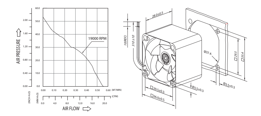 | MODEL | Bearing Type | Rated Voltage | Operating Voltage | Current | Input Power | Speed | Air Flow | Air Pressure | Acoustic Noise | Life expectancy | |||